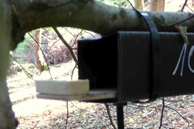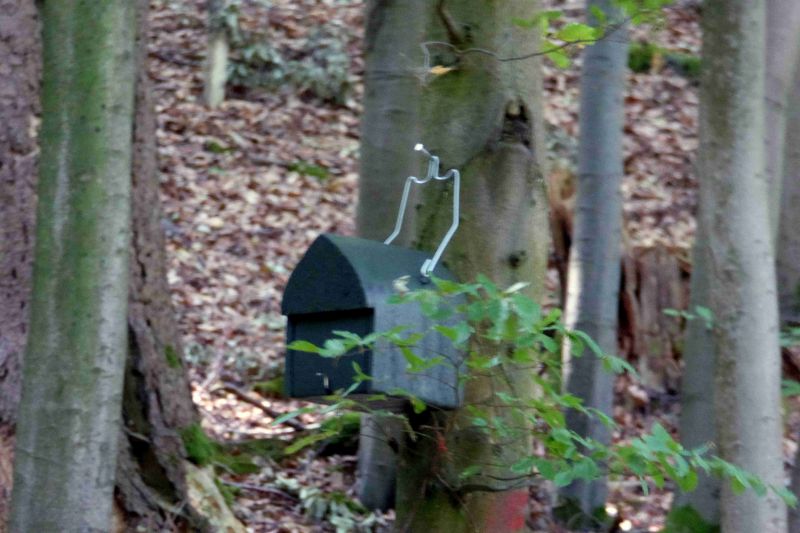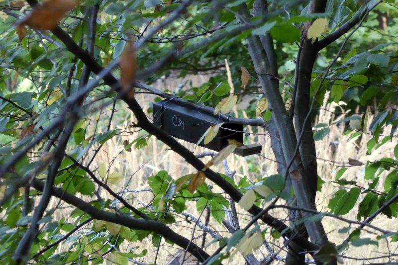 "Wir haben auch einige Haselmauskästen gefunden. Diese Nisthilfen wurden offensichtlich von ECODA-Mitarbeitern (Dienstwagen mit Dortmunder Kennzeichen) angebracht.